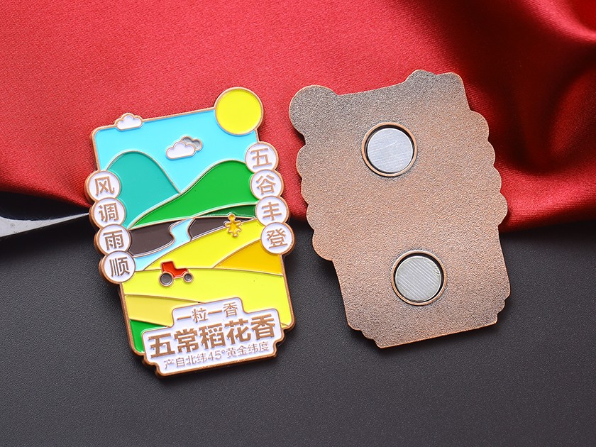 【制作工藝】:沖壓 【上色工藝】:烤漆 【電鍍顏色】:紅古銅 【背面工藝】:砂底 【產(chǎn)品配件】:磁鐵扣