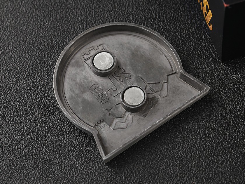 【制作工藝】:壓鑄 【上色工藝】:烤漆+金屬本色 【電鍍顏色】:槍黑拉絲 【背面工藝】:本色凹凸 【產品配件】:磁鐵扣
