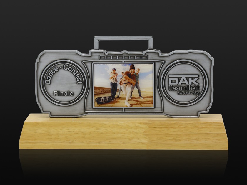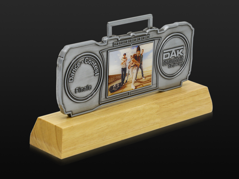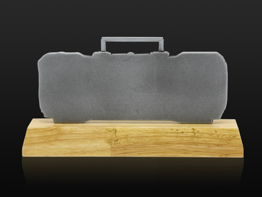 【制作工藝】:壓鑄 【上色工藝】:金屬本色 【電鍍顏色】:槍黑拉絲 【背面工藝】:砂底 【產品配件】:木底座